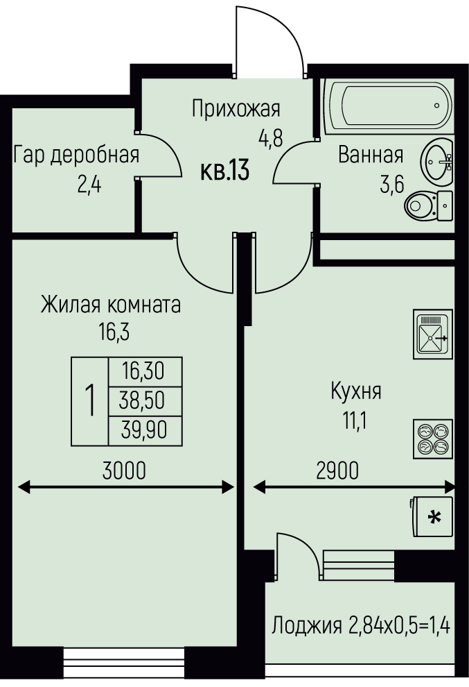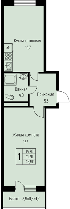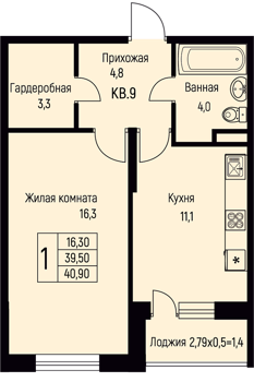 Площадь от 39.9 м2