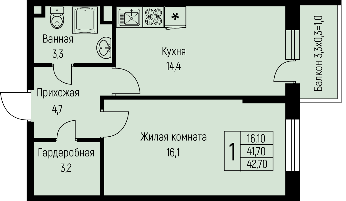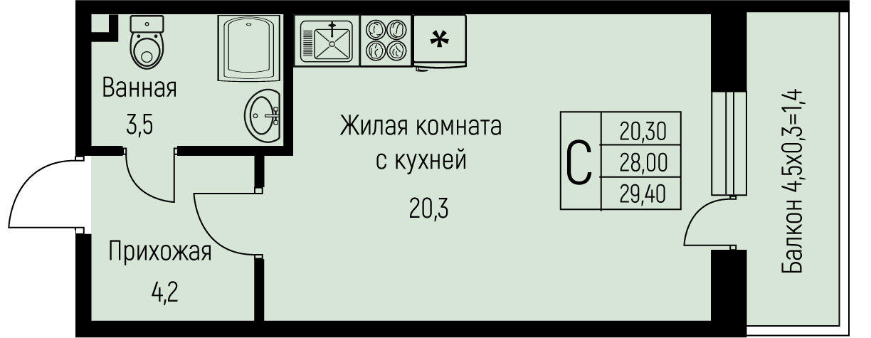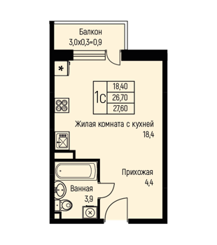 Площадь от 25.7 м2