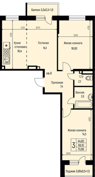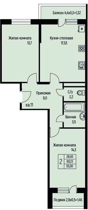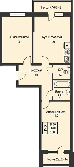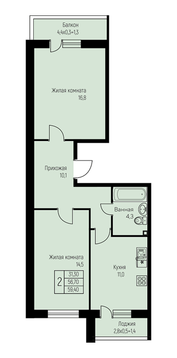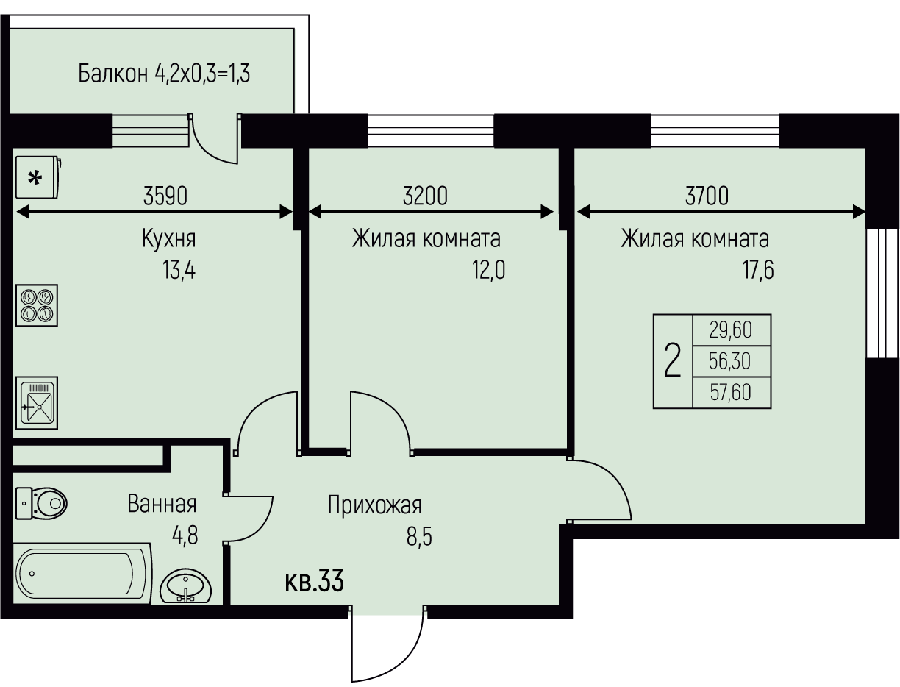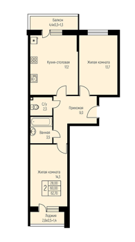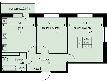 Площадь от 57.6 м2