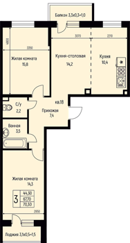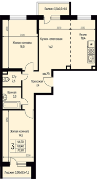 от 25,7м² до 70,2м²