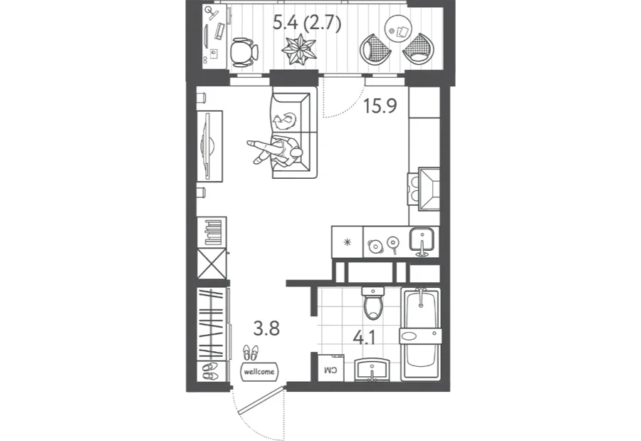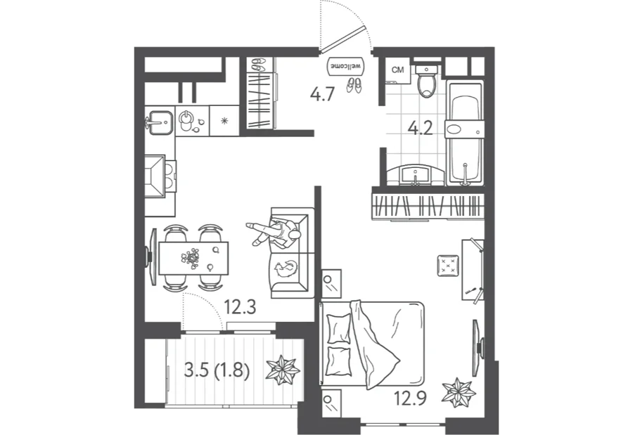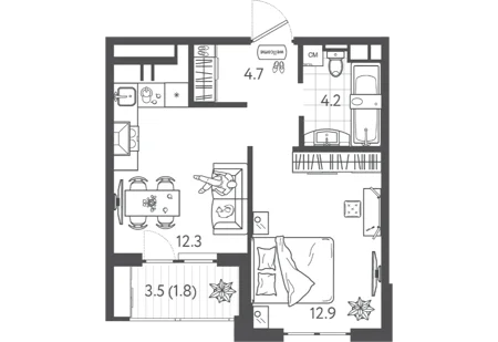 Площадь от 35.95 м2