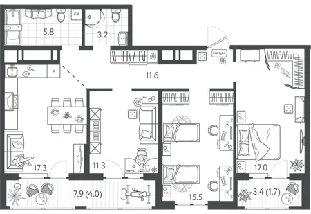 3-комнатные